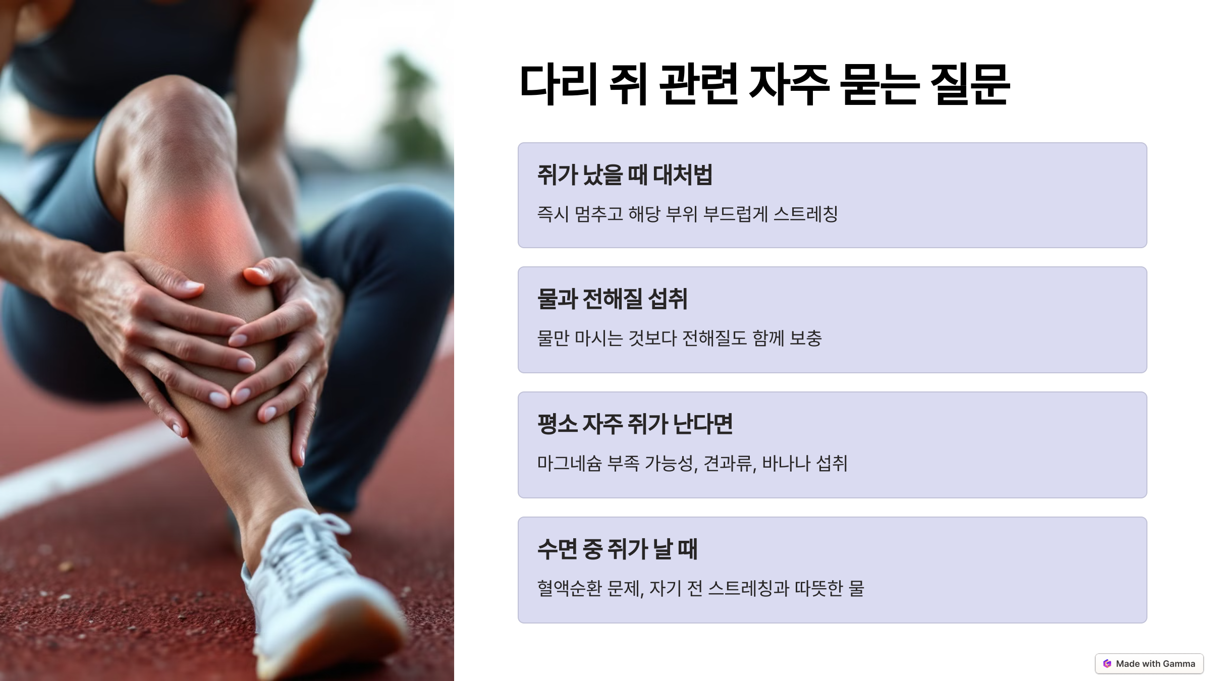❓ FAQ: 달리기 중 다리에 쥐 관련 질문