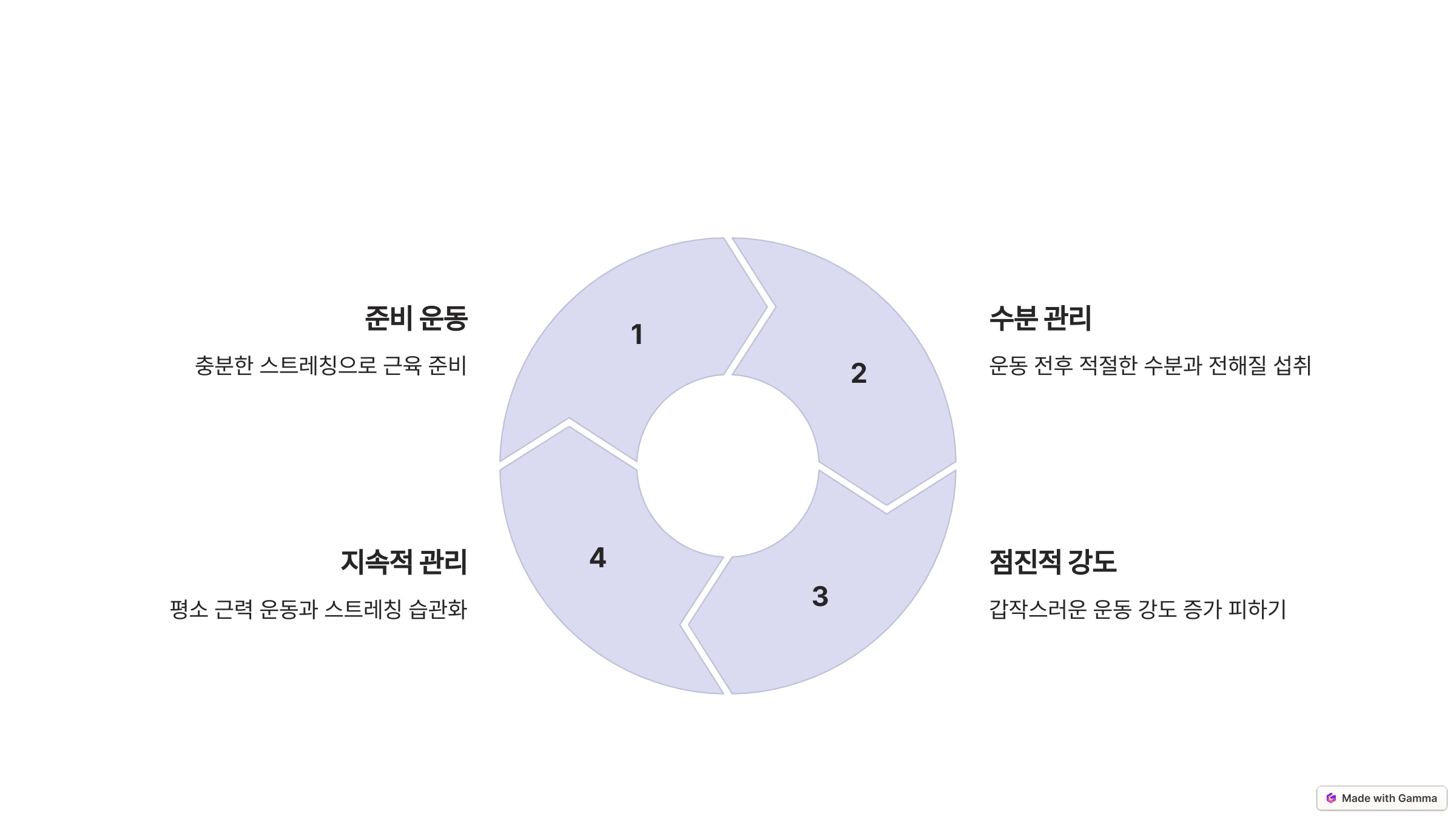 한 번에 너무 강한 운동을 하면 근육이 감당하지 못할 수 있어요. 천천히 강도를 높이는 것이 중요합니다.